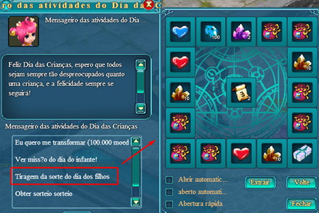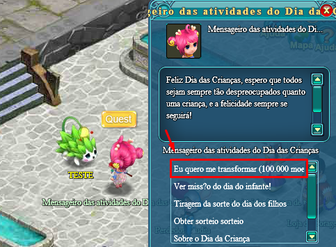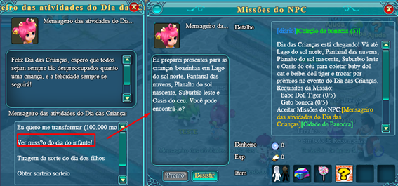 Condições de participação: nível 50+NPC do evento: Mensageiro das atividades do Dia das Crianças (Dong Xuen 308,116)